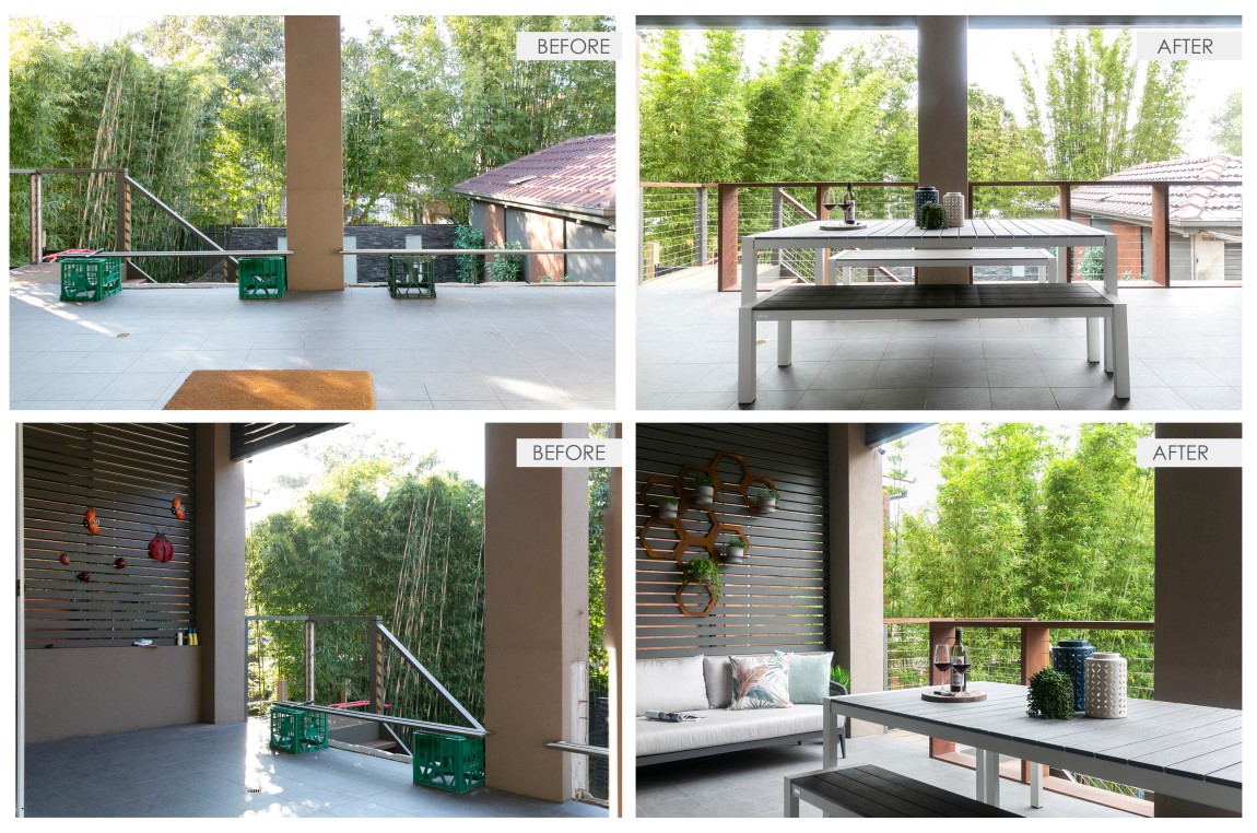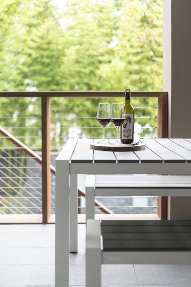Grey Ironbark with custom wide board balustrade (320 x 65mm) and stainless steel wire new installation.