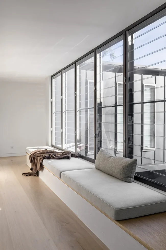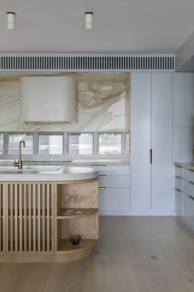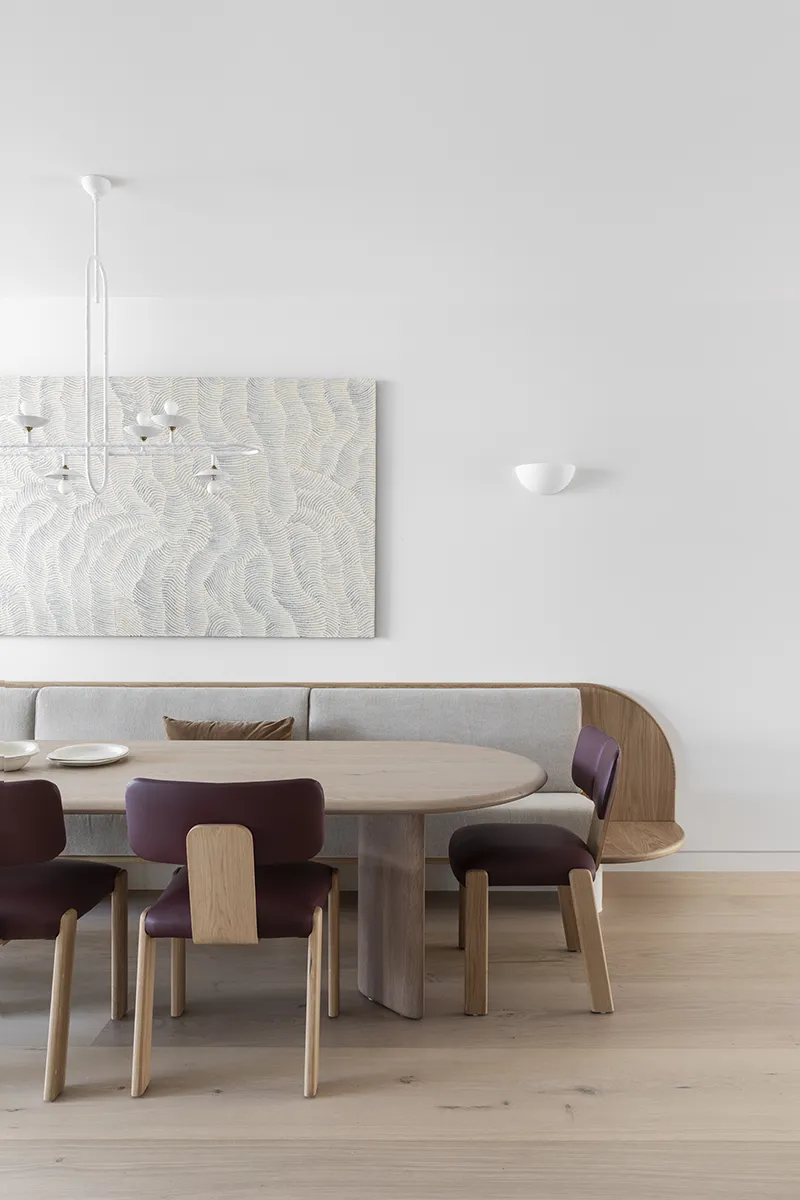 Custom size 400 x 20 x 5000mm unfinished European oak boards were onsite finished with Blanchon bare effect.