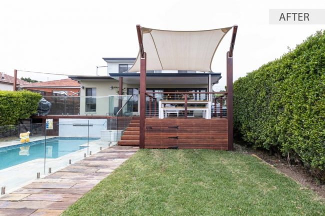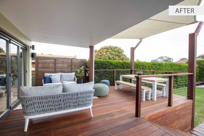 Merbau deck, posts and balustrade with stainless steel wire new installatio.